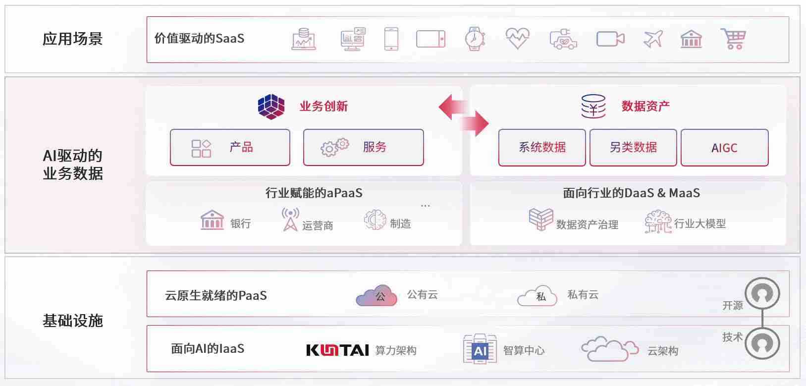 数字时代,,,,围绕企业数字化转型的关键要素,,,,z6人生就是博数码开创性的提出数云融合战略和技术体系框架,,,,着力在云原生、、数字原生、、、AI原生和信创产业上架构产品和服务能力,,,,为处在不同数字化转型阶段的快消零售、、、、汽车、、、、金融、、、医疗、、政企、、教育、、、运营商等行业客户提供泛在的敏捷IT能力和融合的数据驱动能力,,,,构建跨界融合创新的数字业务场景和新业务模式,,,,助力企业级客户建立面向未来的核心能力和竞争优势,,,全面推动社会的数字化、、、智能化转型升级。。